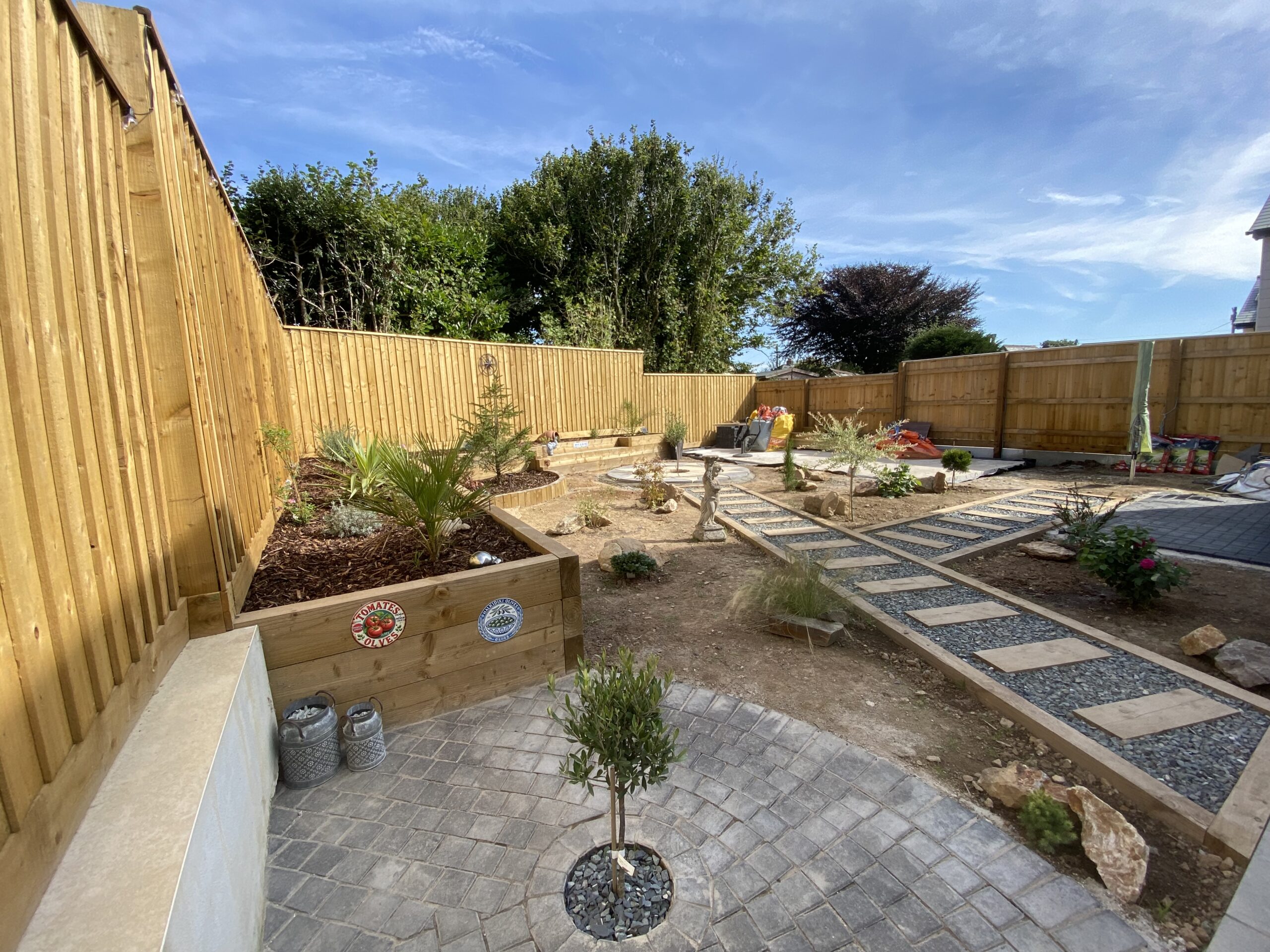 Garden makeover This has had the following New Fence Sleeper Beds Sleeper Steps Paving Circle Still have decorative stones and build a gym to do on this project. Before After